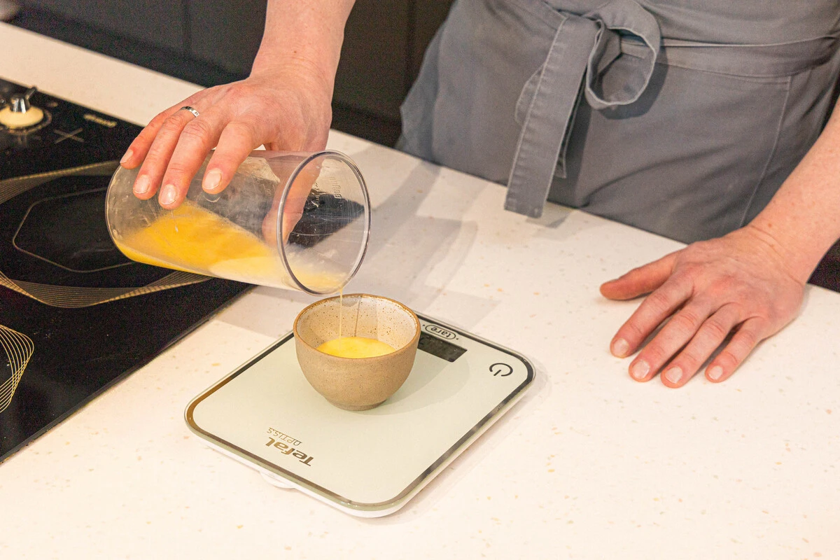 Для меланжа взбейте яйца вилкой или венчиком. Отмерьте нужное количество, остальное оставьте для смазывания.