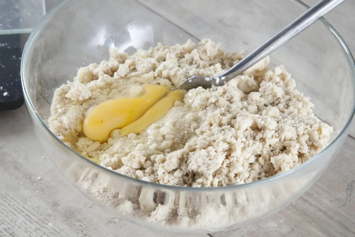 Добавьте яйцо и быстро замесите тесто.