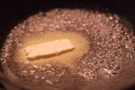 Растопите на сковороде сливочное масло с сахаром, влейте три столовых ложки воды — подержите немного пока сахар начнет темнеть.
