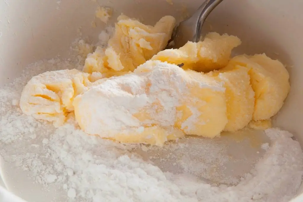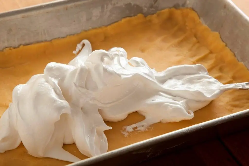 Аккуратно разбейте яйца и отделите белки от желтков, желтки добавьте к маслу, перемешайте, просейте муку, вилкой замесите тесто, не увлекайтесь, слишком долго месить не стоит. Тесто распределите руками по форме, смазанной маслом и посыпанной мукой, сформируйте бортики.