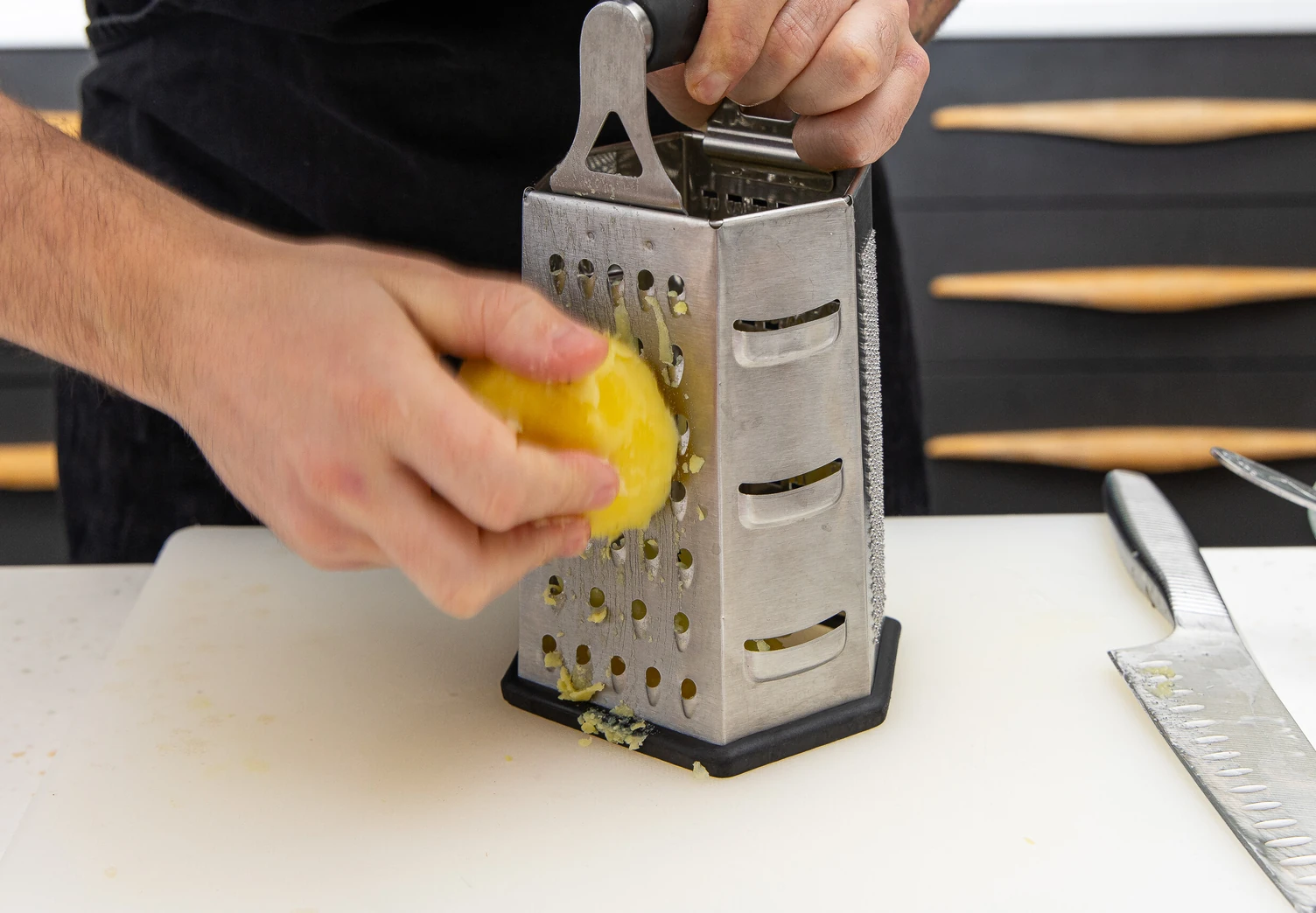 Картофель отварите до полуготовности и натрите на крупной тёрке.