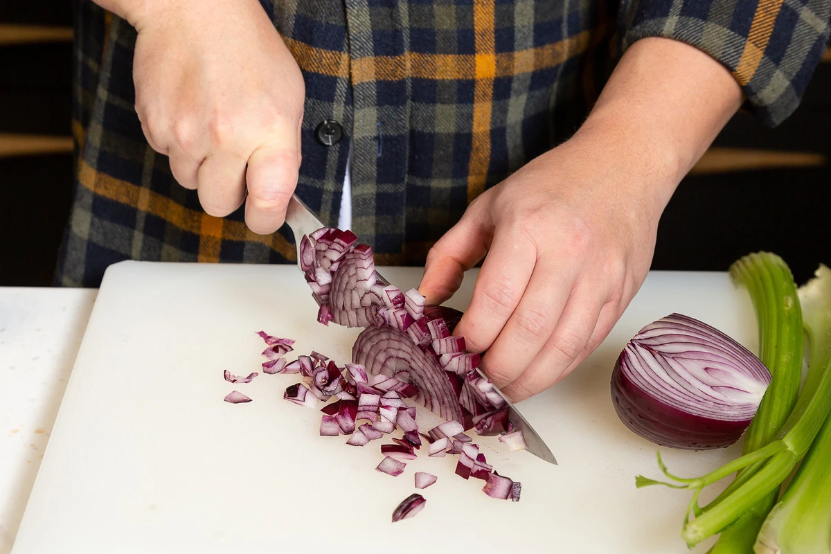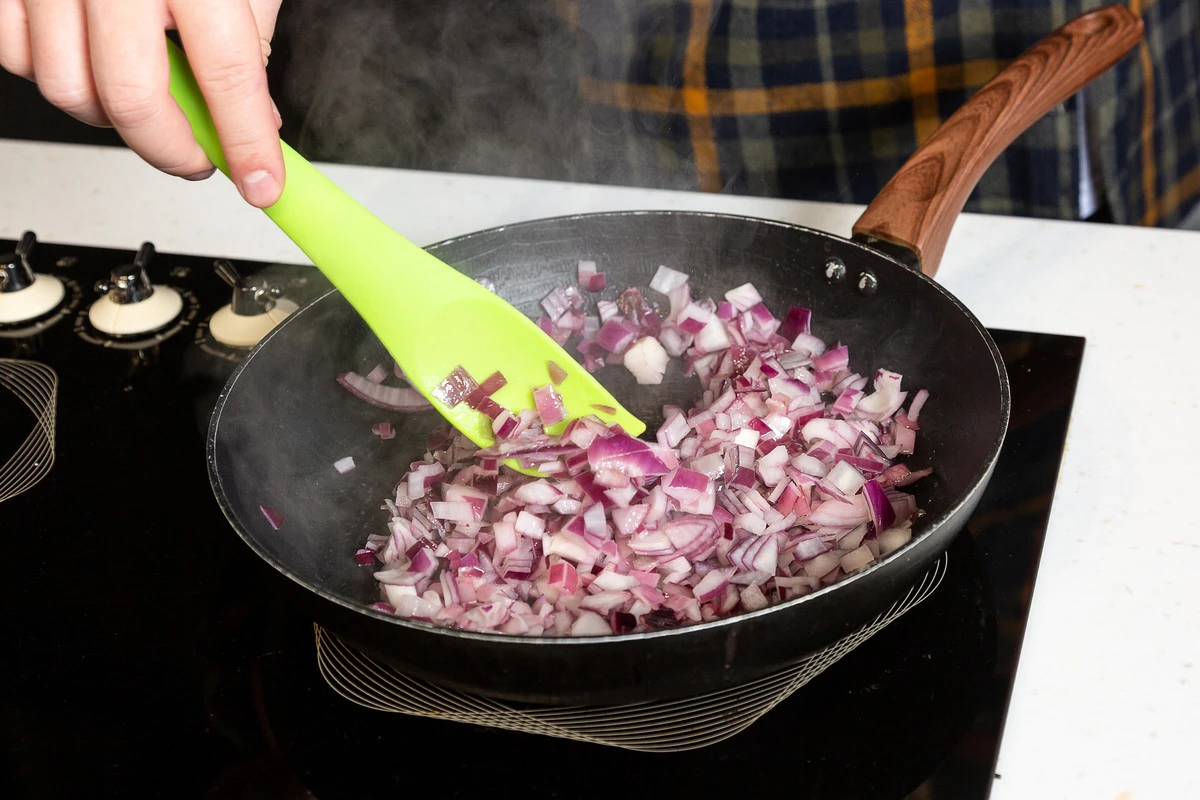 Разогрейте сковороду с 1-2 ст. л. растительного масла. Выложите лук и готовьте, периодически помешивая, несколько минут.