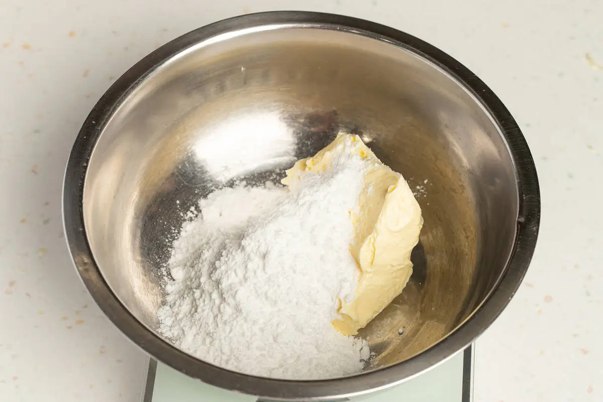 Мягкое масло смешайте с солью и сахарной пудрой при помощи вилки.