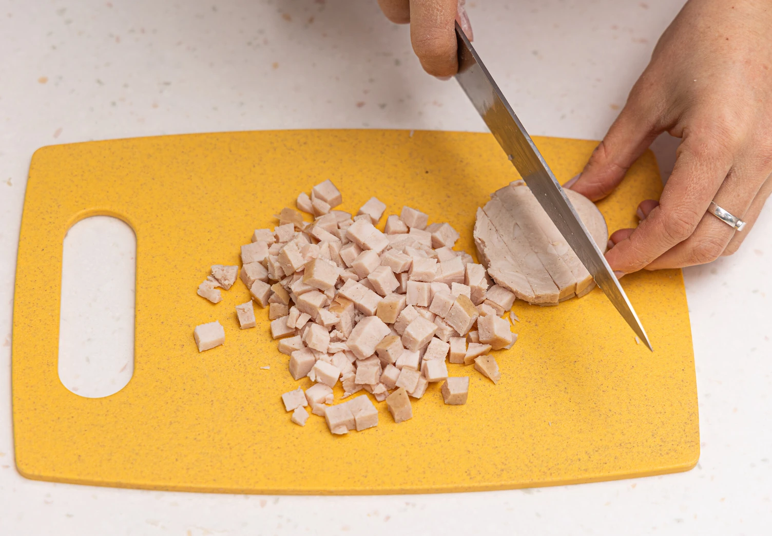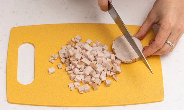 Ветчину для начинки нарежьте мелкими кубиками или пластинками.