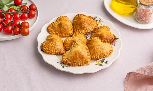Влюблённые в Латинской Америке знают толк в страсти! Их фирменные пирожки — эмпанадас — в нашем рецепте превращаются в милые сердечки с ветчиной и сыром. Отличный вариант для завтрака в обнимку или тёплого перекуса вдвоём.
