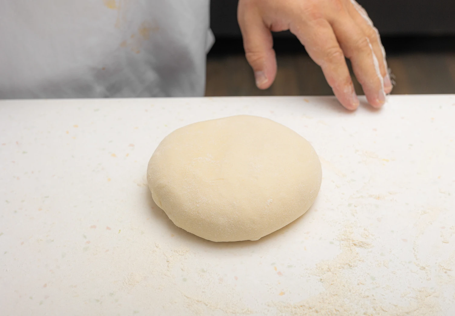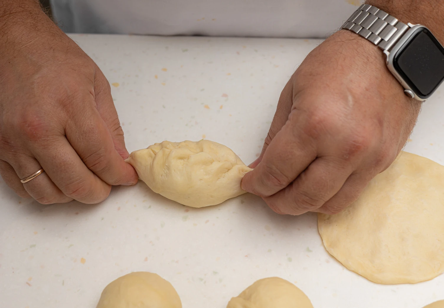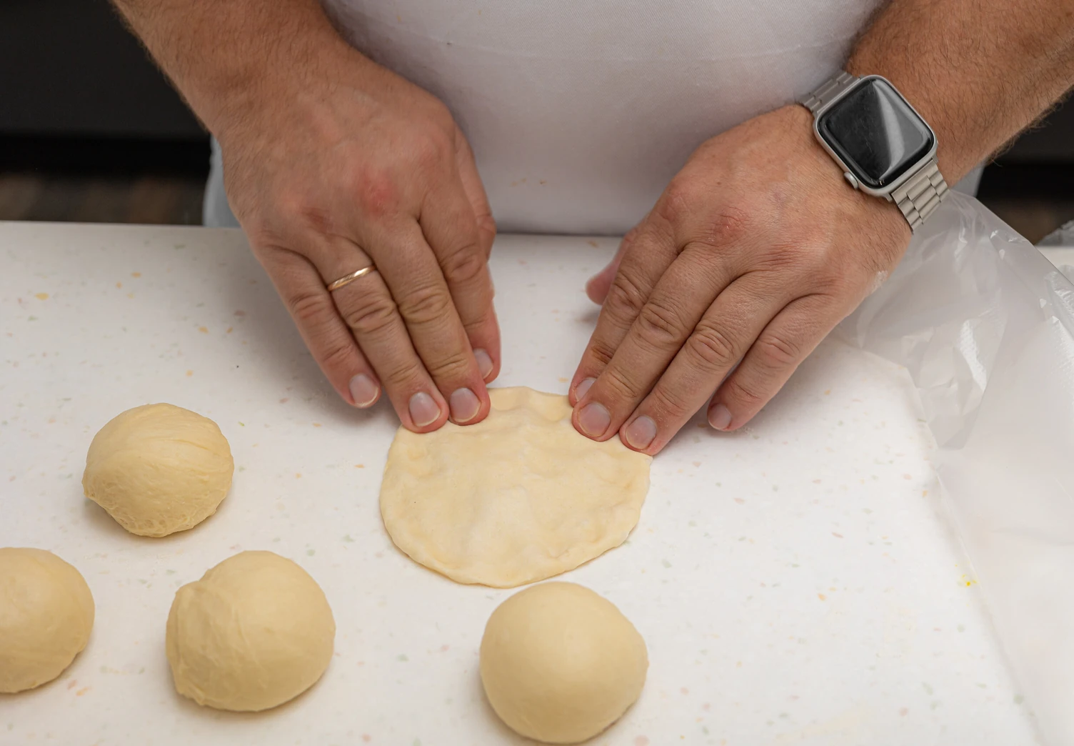 Раскатайте или разомните руками каждую часть теста в круглый блин.