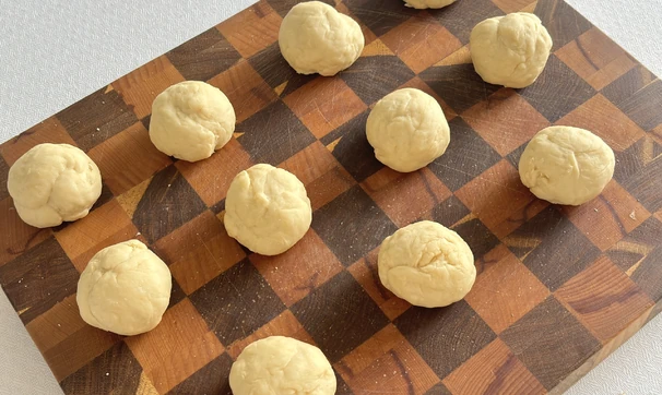 Когда тесто поднимется, разделите его на 11 равных частей и придайте им круглую форму.