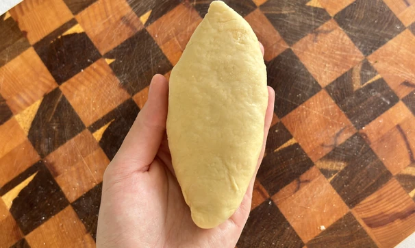 Залепите края теста, придав пирожку форму лодочки. Проделайте то же самое с остальным тестом.