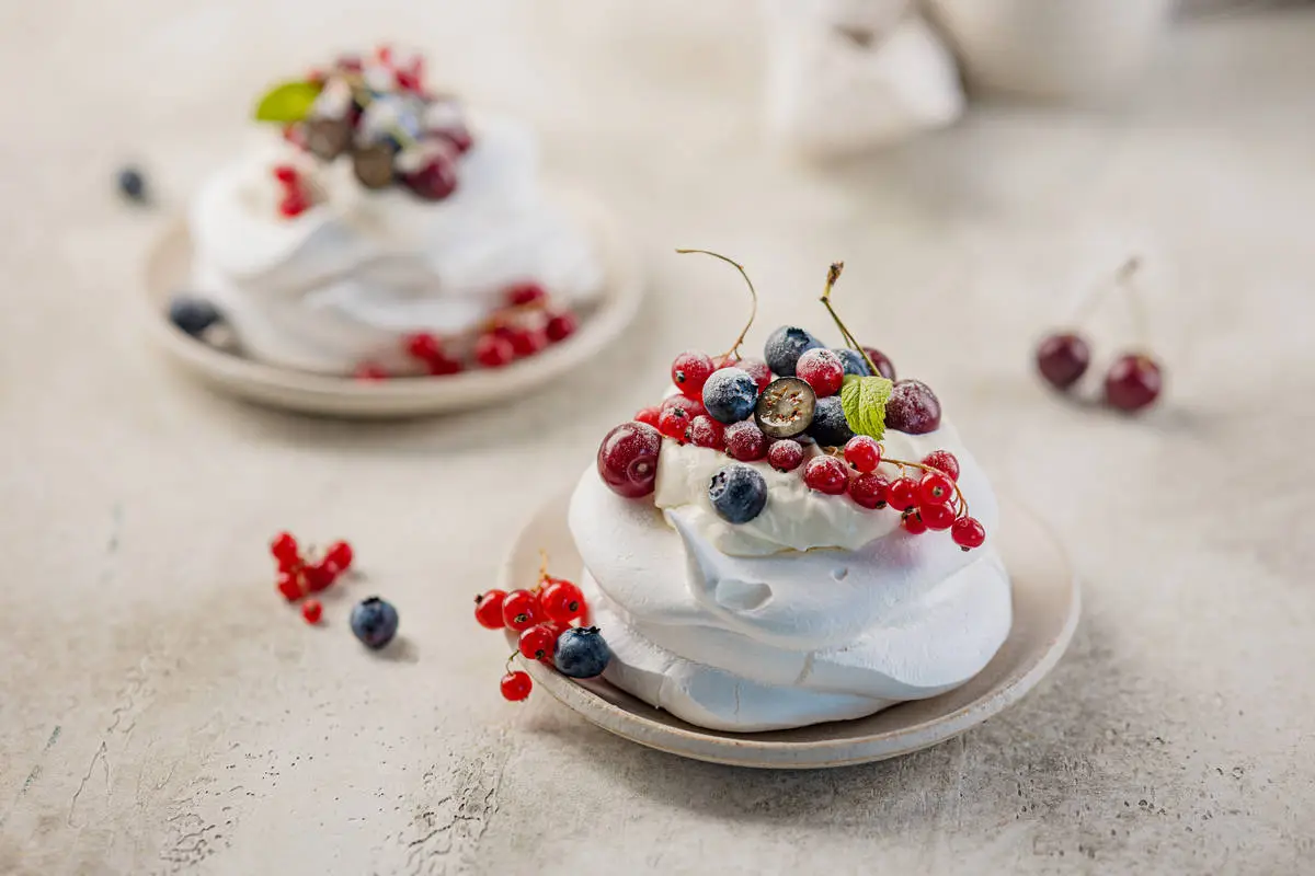 Десерт Павлова всегда выглядит празднично и изысканно, а готовится не очень сложно. Если вы уже делали безе, то и Павлова обязательно получится. Ягоды можно использовать любые сезонные, особенно с выраженной кислинкой во вкусе. Смородина, вишня, клубника подойдут идеально.