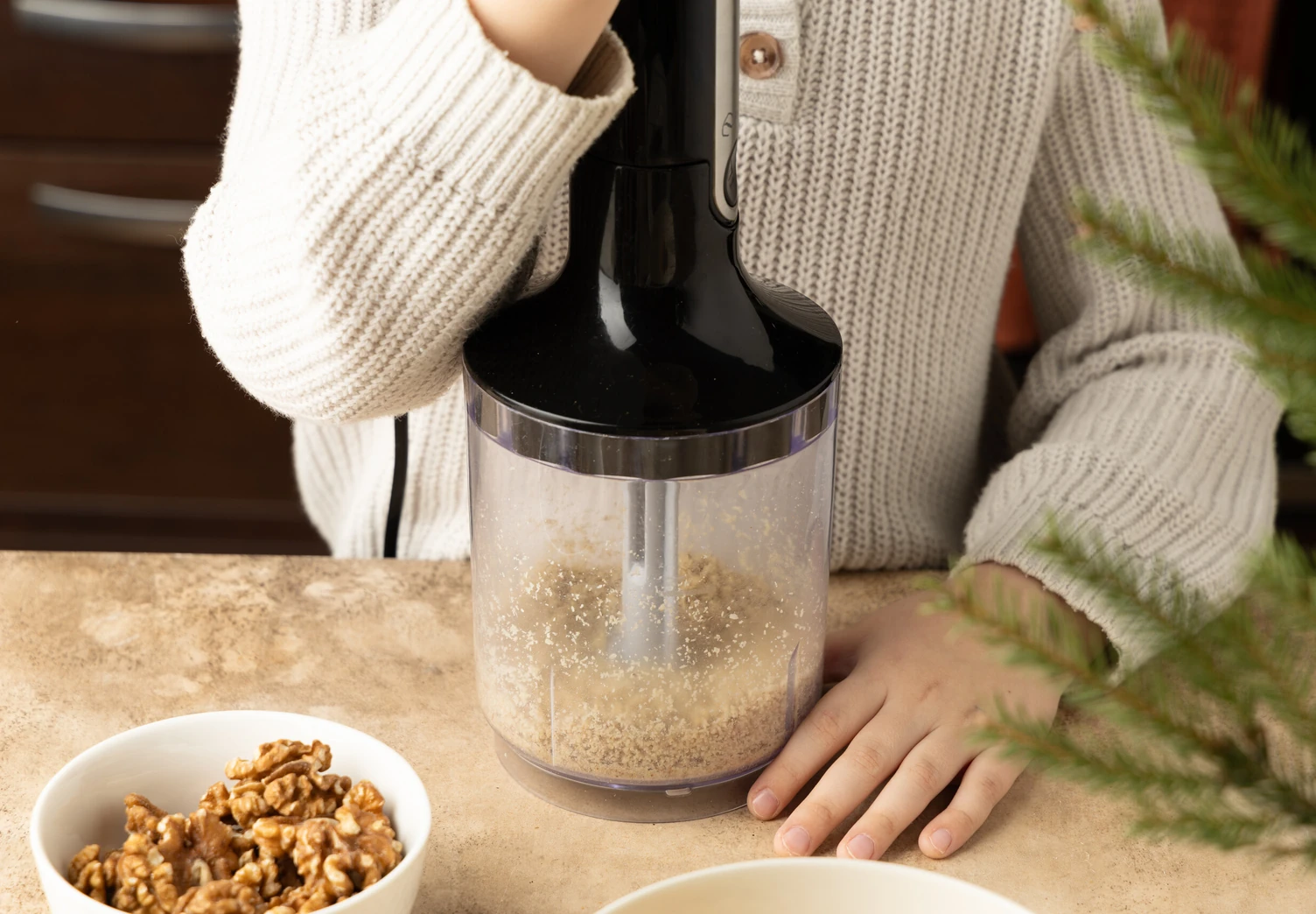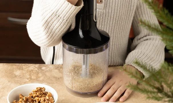 Орехи измельчите блендером или мелко порубите ножом.