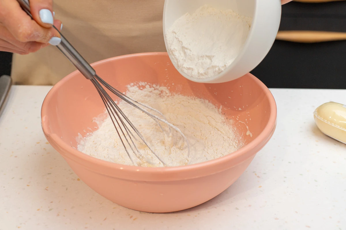 Всыпьте муку и соль, размешайте до однородности, должно получиться густое тесто.