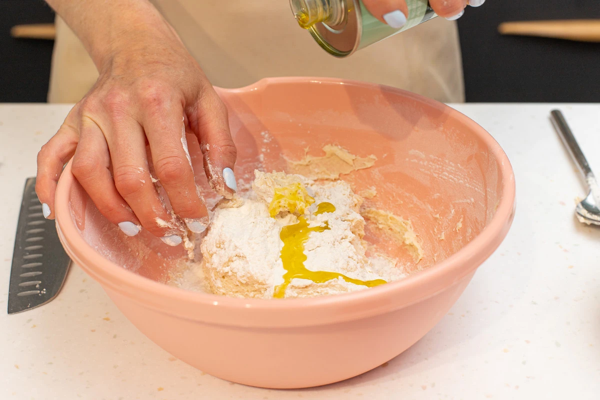 Влейте оливковое масло и ещё раз хорошо размешайте.