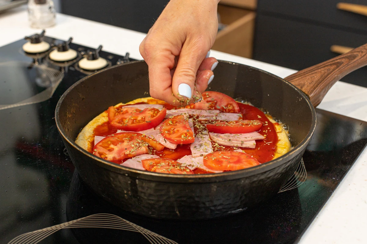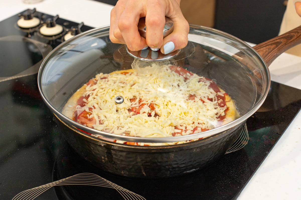 От такого варианта приготовления не стоит ожидать вкуса классической пиццы и тонкой хрустящей корочки. Но если нет духовки и времени, а чего-то сытного и сырного хочется, рецепт пиццы на сковороде — то, надо. Получается вкусно, а готовится просто.