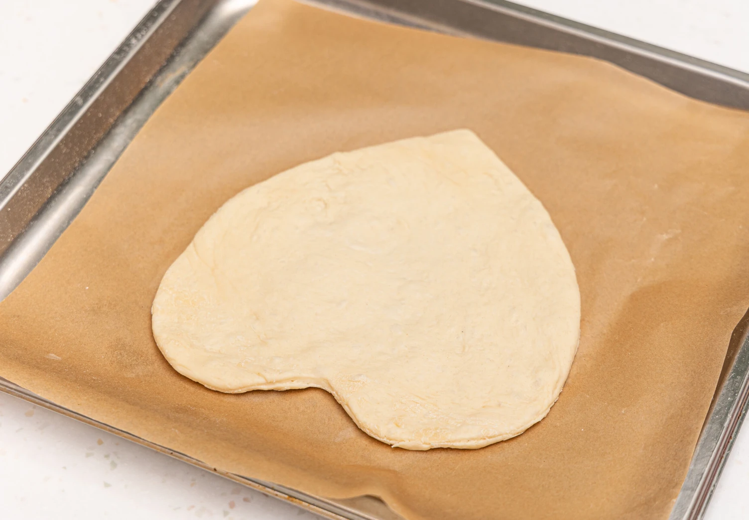Каждую часть раскатайте в круг диаметром около 25 см и толщиной 5–7 мм. Из полученных заготовок сформируйте руками или вырежьте специальной формой сердце.