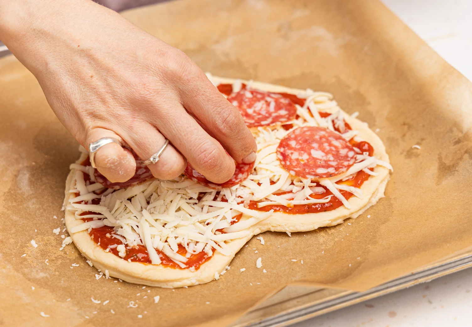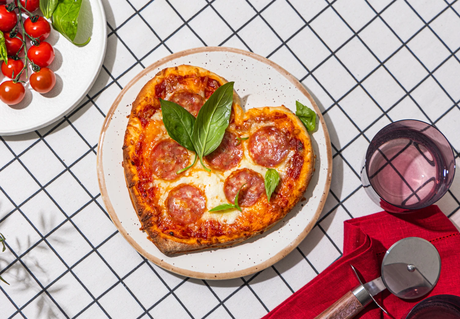Отправьте пиццы в предварительно разогретую до 220 °C духовку на 7–8 минут. Готовое блюдо украсьте свежим базиликом.