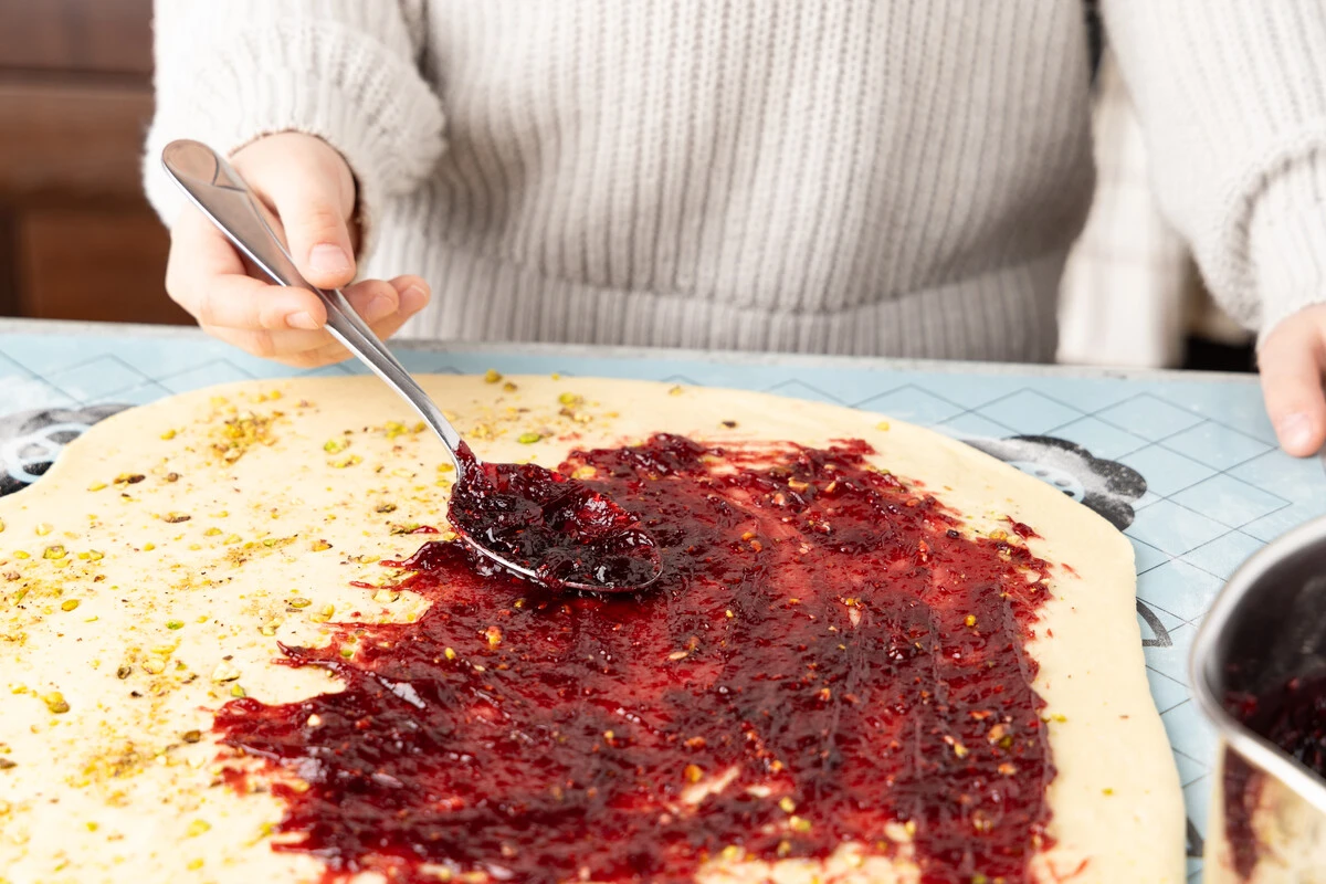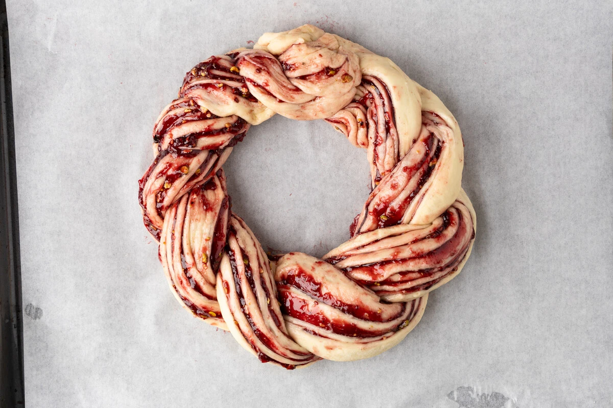 Рецепт «Плетёнка с малиновым джемом и фисташками»