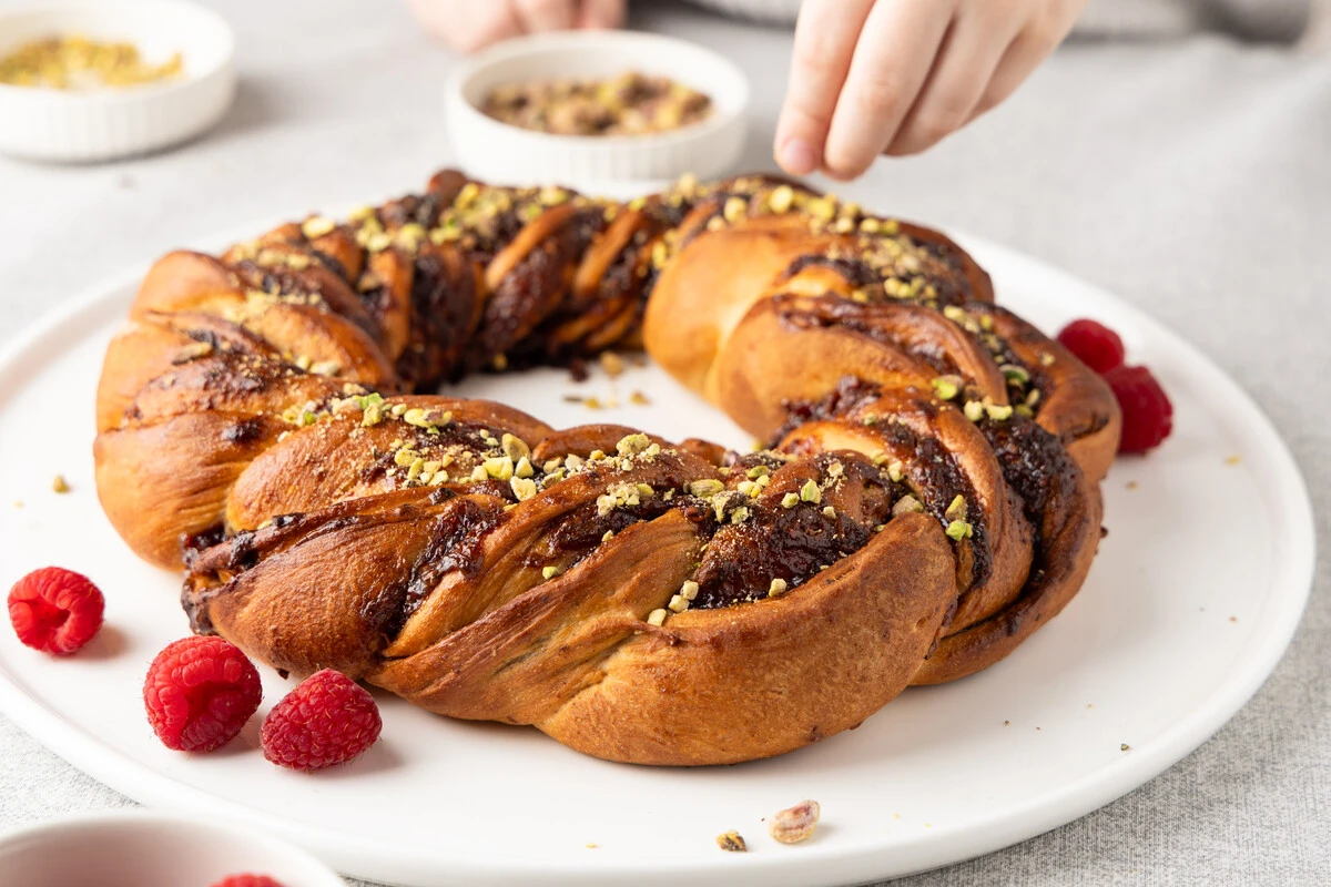 Плетёнка с малиновым джемом и фисташками
