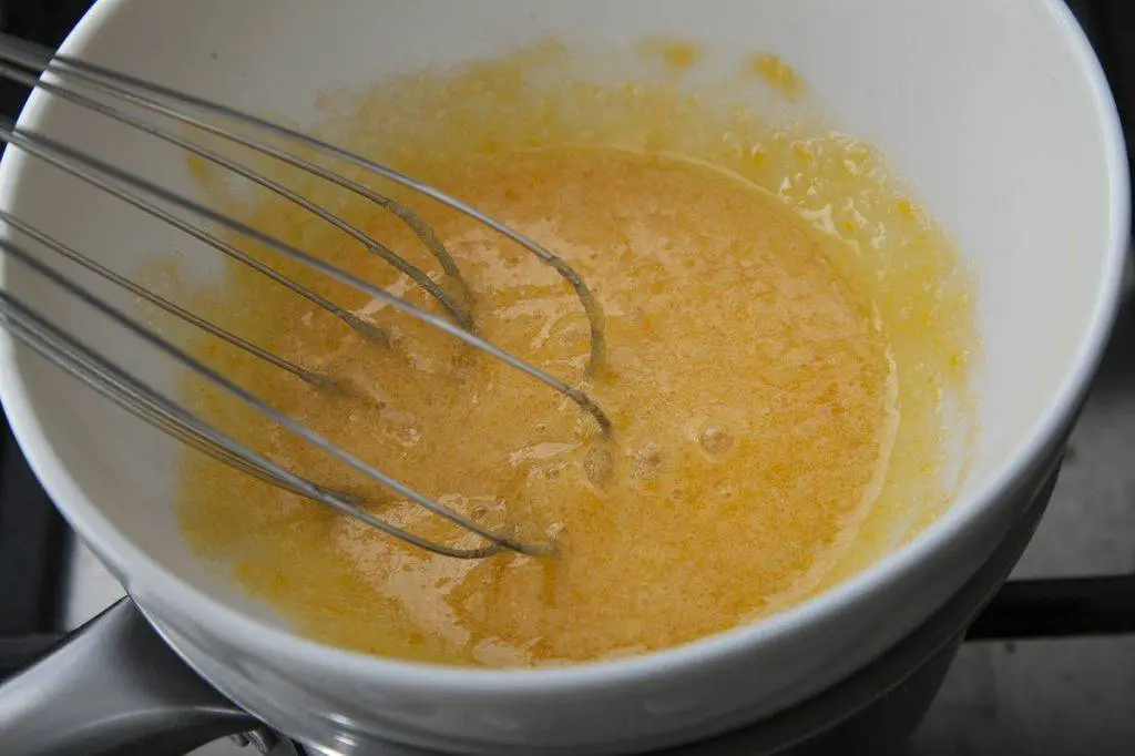 Добавьте к горячим желткам сливочное масло, размешайте до однородности.