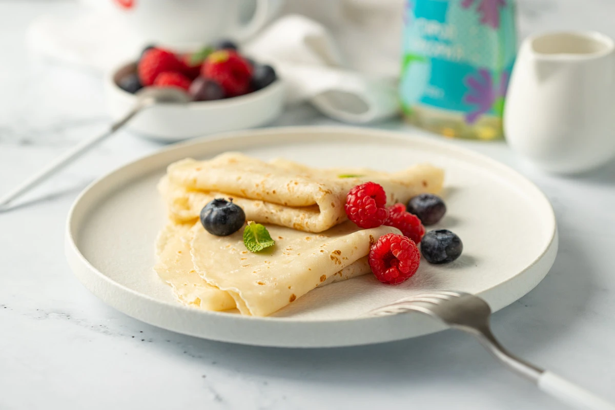 Подавайте с сиропом или мёдом и свежими ягодами.