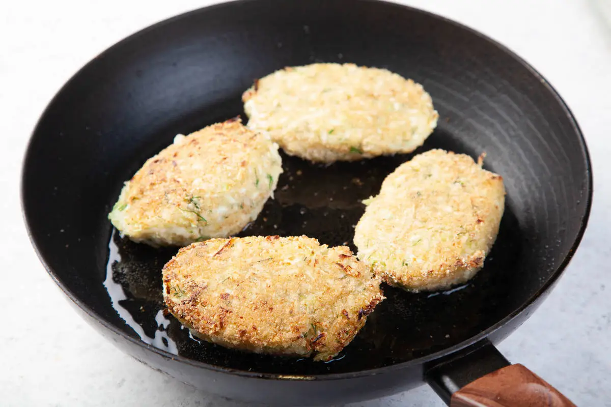 Сформируйте котлеты и обваляйте их в панировке. Обжарьте на горячей сковороде с маслом с двух сторон. Затем убавьте огонь, накройте крышкой и доведите до готовности, протушив ещё 10-15 минут.