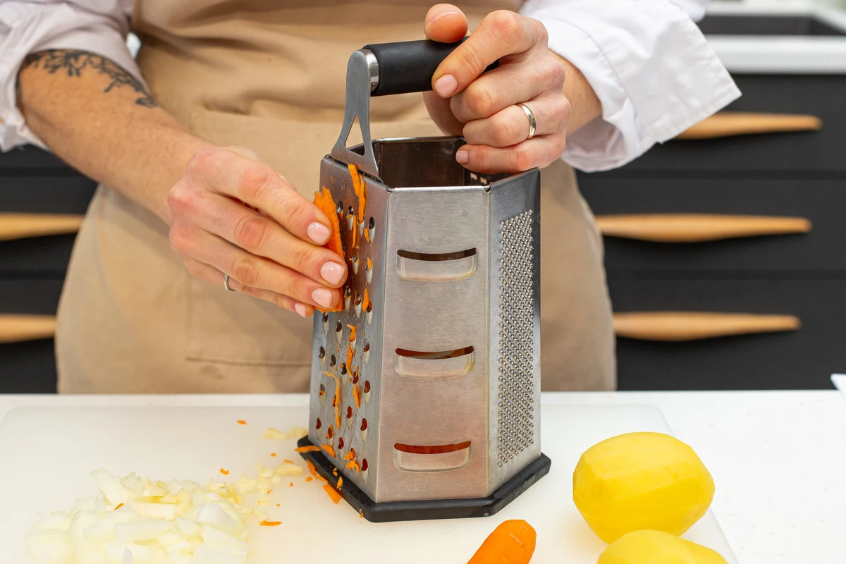 Лук почистите и нарежьте кубиками. Чеснок нарежьте мелко. Морковь и свёклу почистите и измельчите на крупной тёрке.