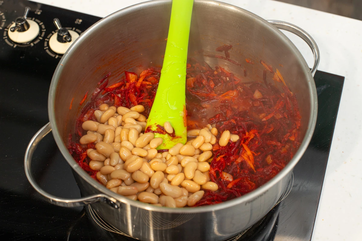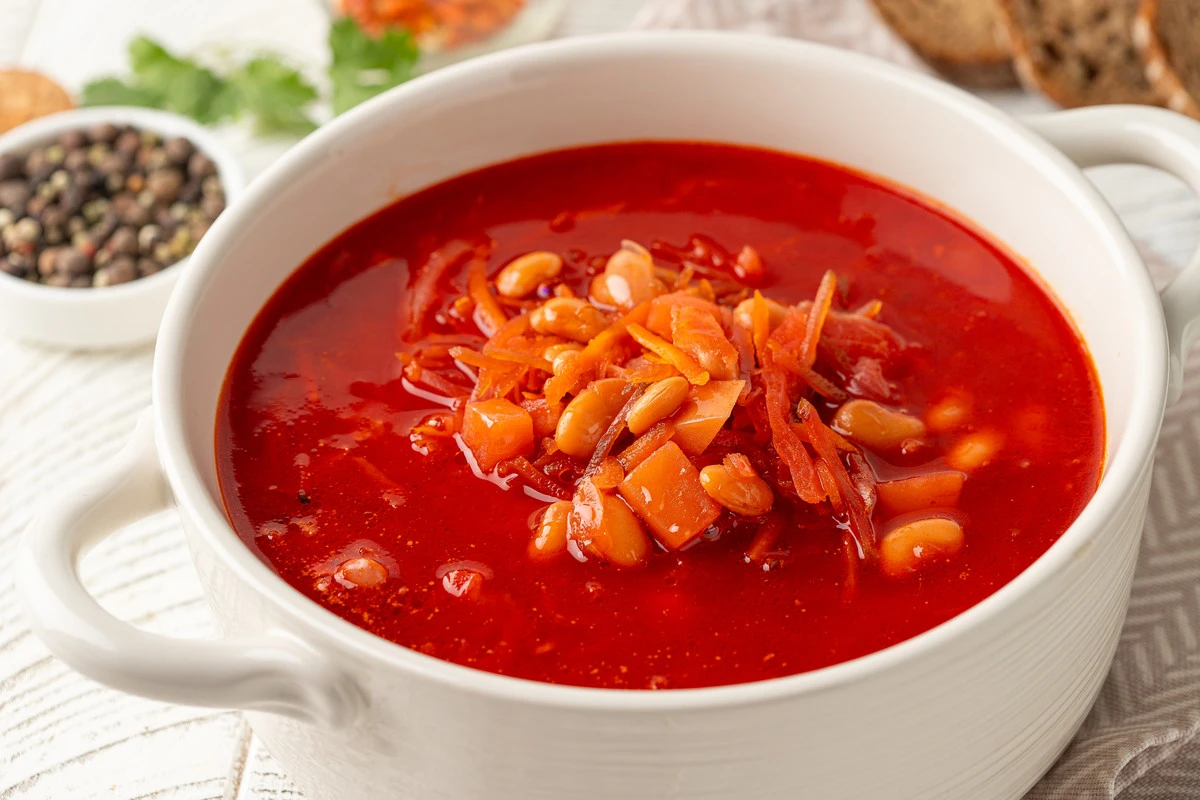 Вкусный борщ можно приготовить не только на мясном бульоне. Сварите его из овощей и фасоли — она не только добавит вкуса, но и сделает блюдо более сытным.