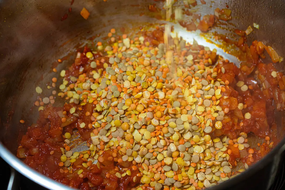 Смесь бобовых замочите в холодной воде на несколько часов. Этот шаг можно пропустить, но замачивание помогает бобовым быстрее вариться и лучше усваиваться организмом.