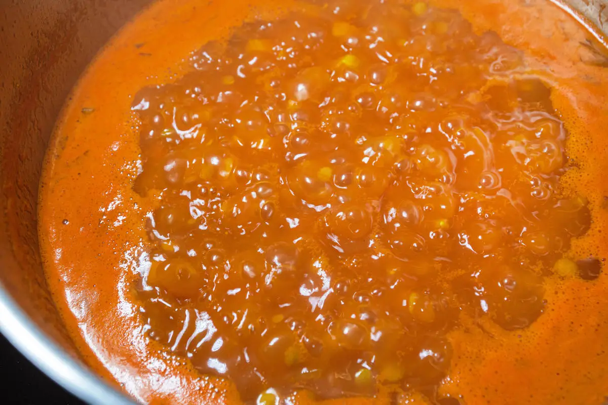 Доведите до кипения, убавьте огонь и варите суп примерно 40 минут.