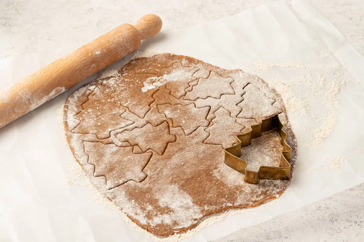 Тесто раскатайте тонко и вырезайте фигурки ножом или формочками для печенья, сразу проделайте дырочки для ленточек. Переложите пряники на противень, застеленный бумагой, и выпекайте в разогретой до 200 °C духовке 7-8 минут. А какие ароматы будут распространяться в это время по всему дому!
