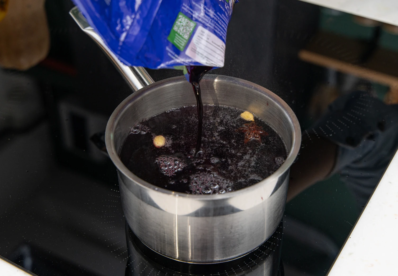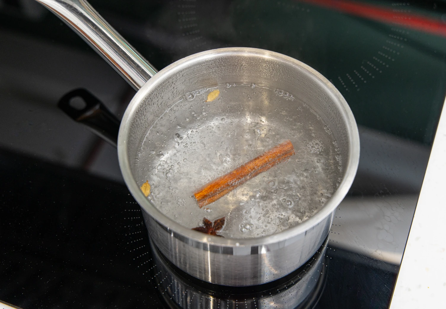Доведите до кипения 1,5 л воды. Добавьте кардамон, корицу и бадьян и варите на медленном огне в течение 2 минут.