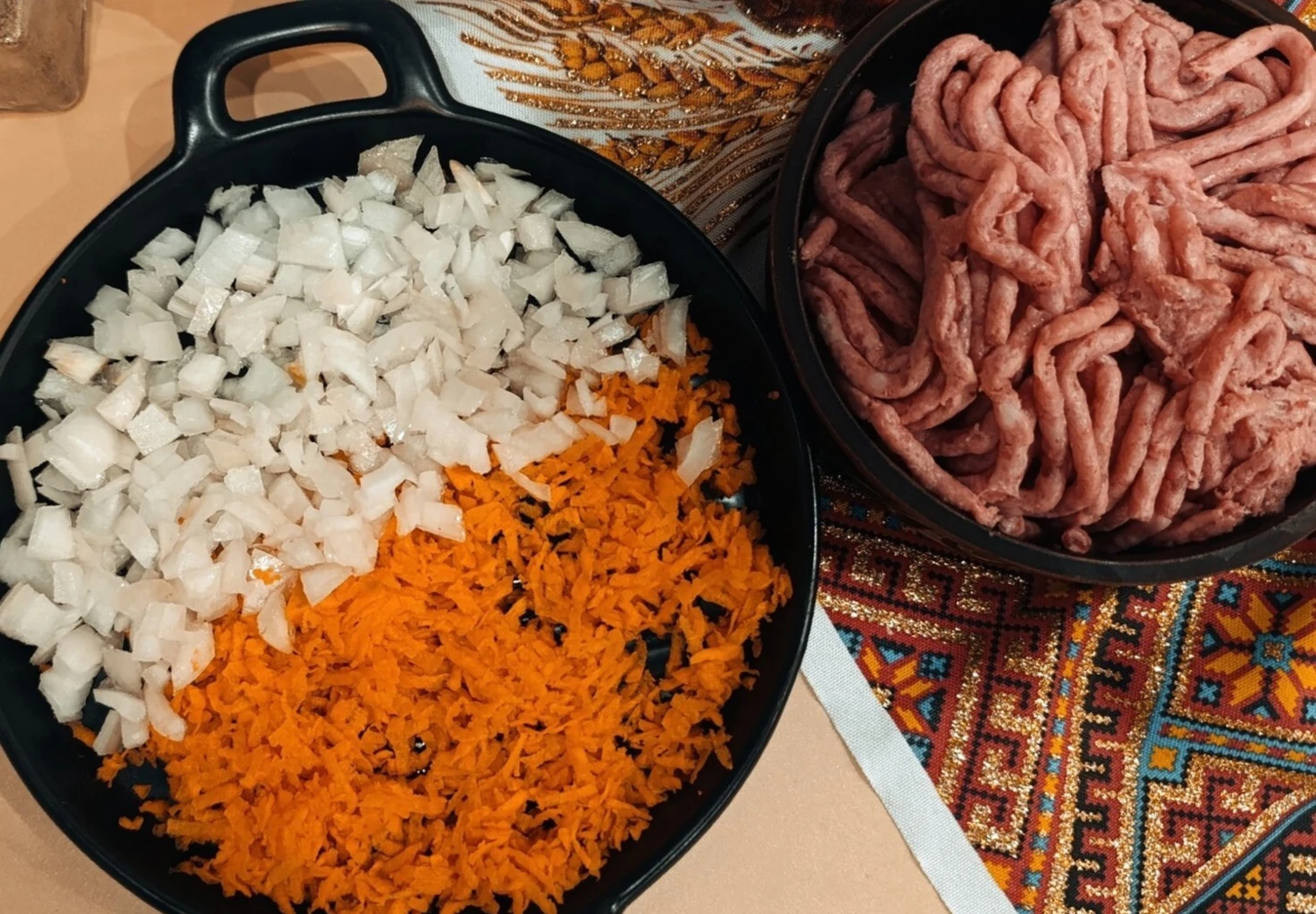 В рецепте используются товары из категорий: Мясо, птица; Овощи, фрукты, ягоды, зелень; Масла, соусы, специи, сахар и соль; Молочные продукты, яйцо; Супермаркет; Крупы, макароны, мука