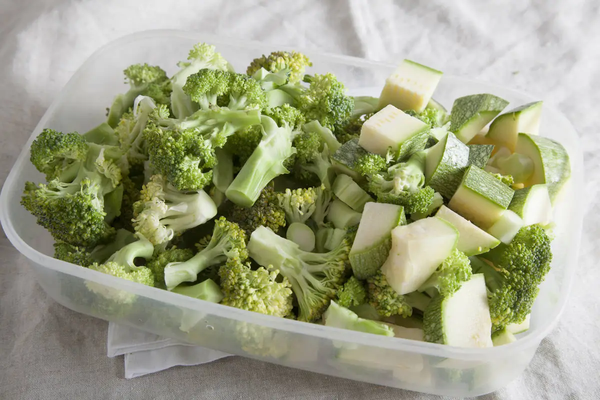 Цукини помойте и не очищая от кожицы порежьте крупными кубиками, брокколи разберите на соцветия, щавель нарежьте полосками.