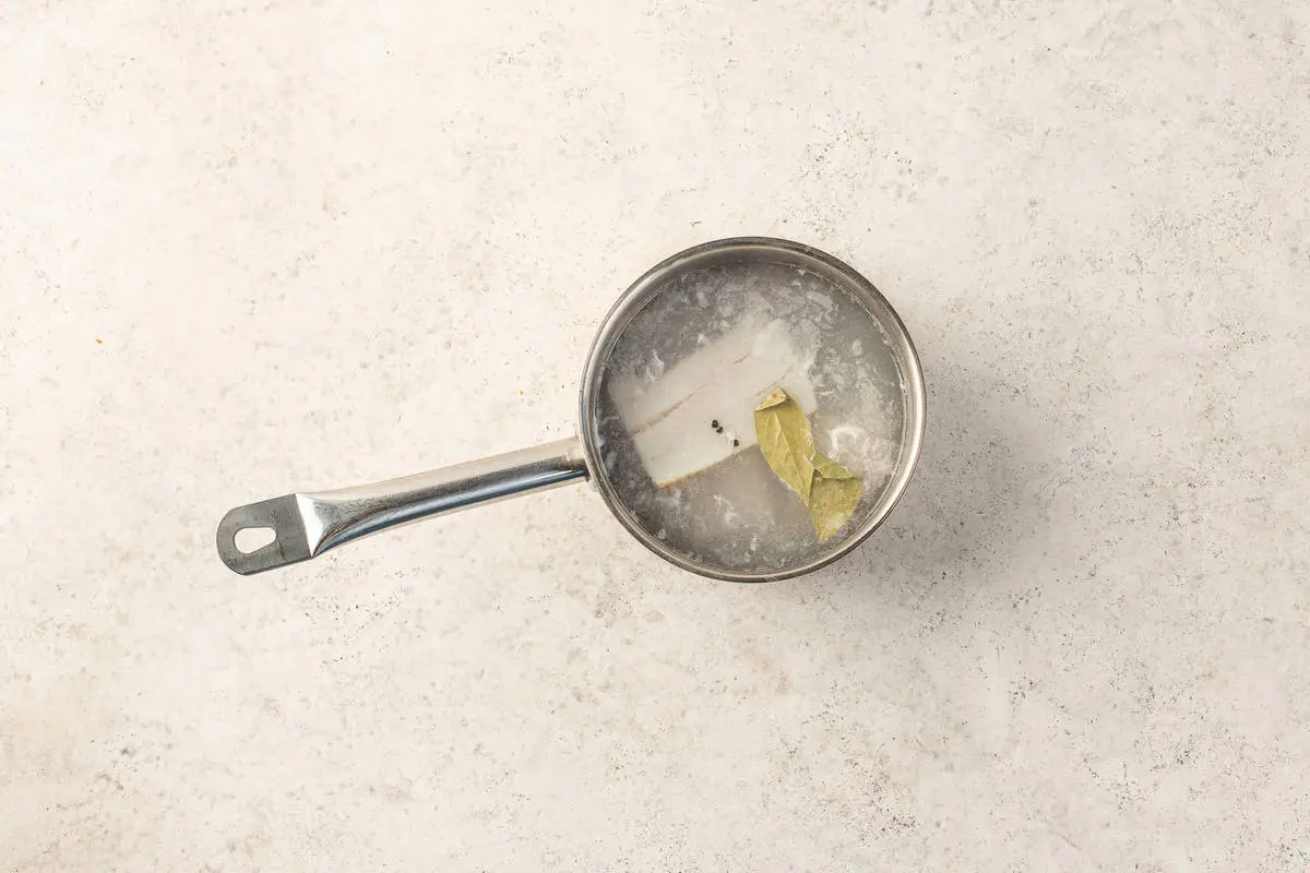 Рыбу положите на 3 минуты в кипящую воду вместе с солью и лавровым листом, затем сразу выложите на тарелку.
