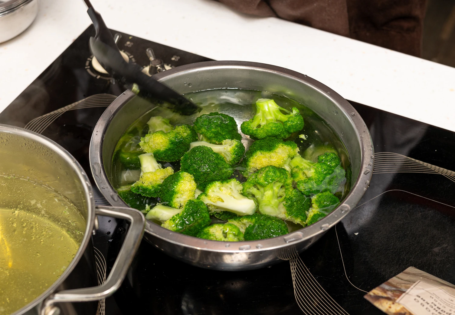 Приготовьте начинку. Для этого разделите брокколи на небольшие соцветия и бланшируйте в кипящей воде 3–4 минуты.