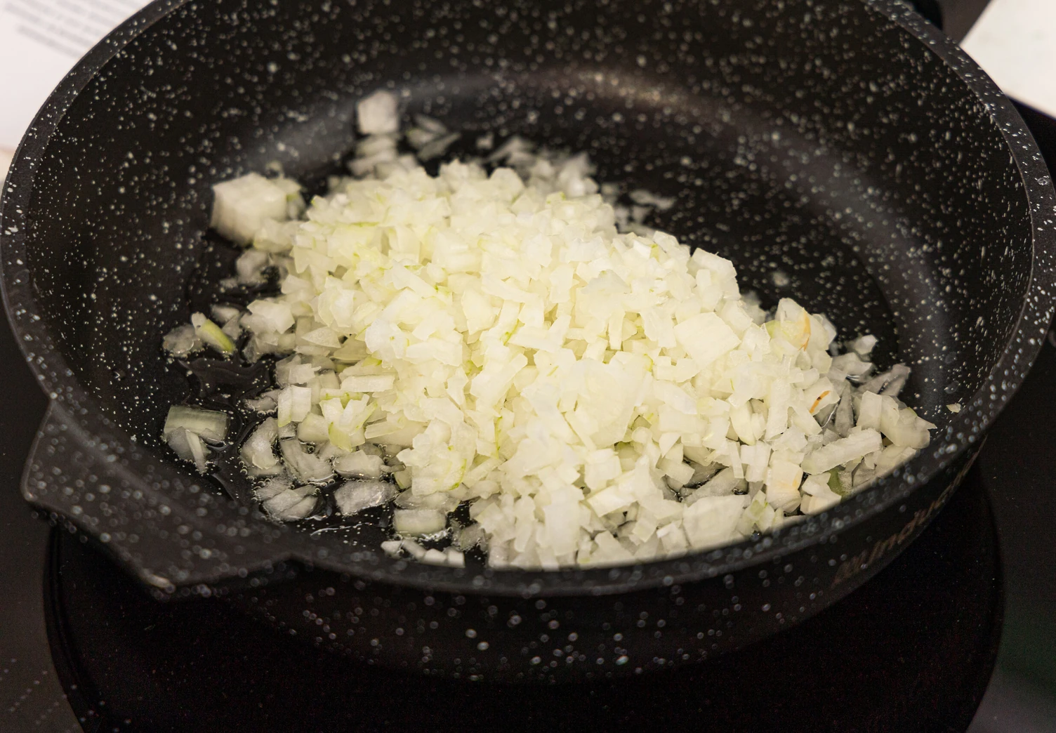 Мелко нарежьте лук и обжарьте его на растительном масле около 5–7 минут до мягкости.