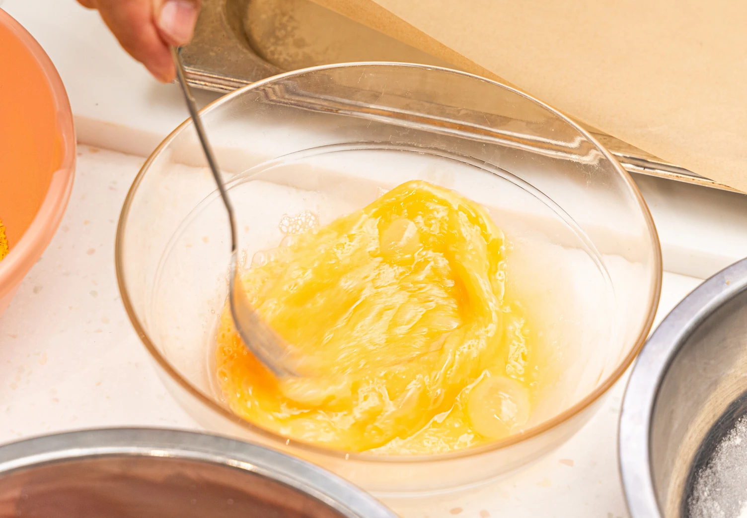 Смешайте муку с солью, перцем и паприкой. Взбейте яйца вилкой.