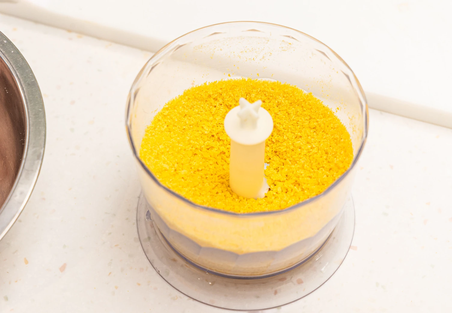 Измельчите кукурузные хлопья в мелкую крошку с помощью блендера или ступки.