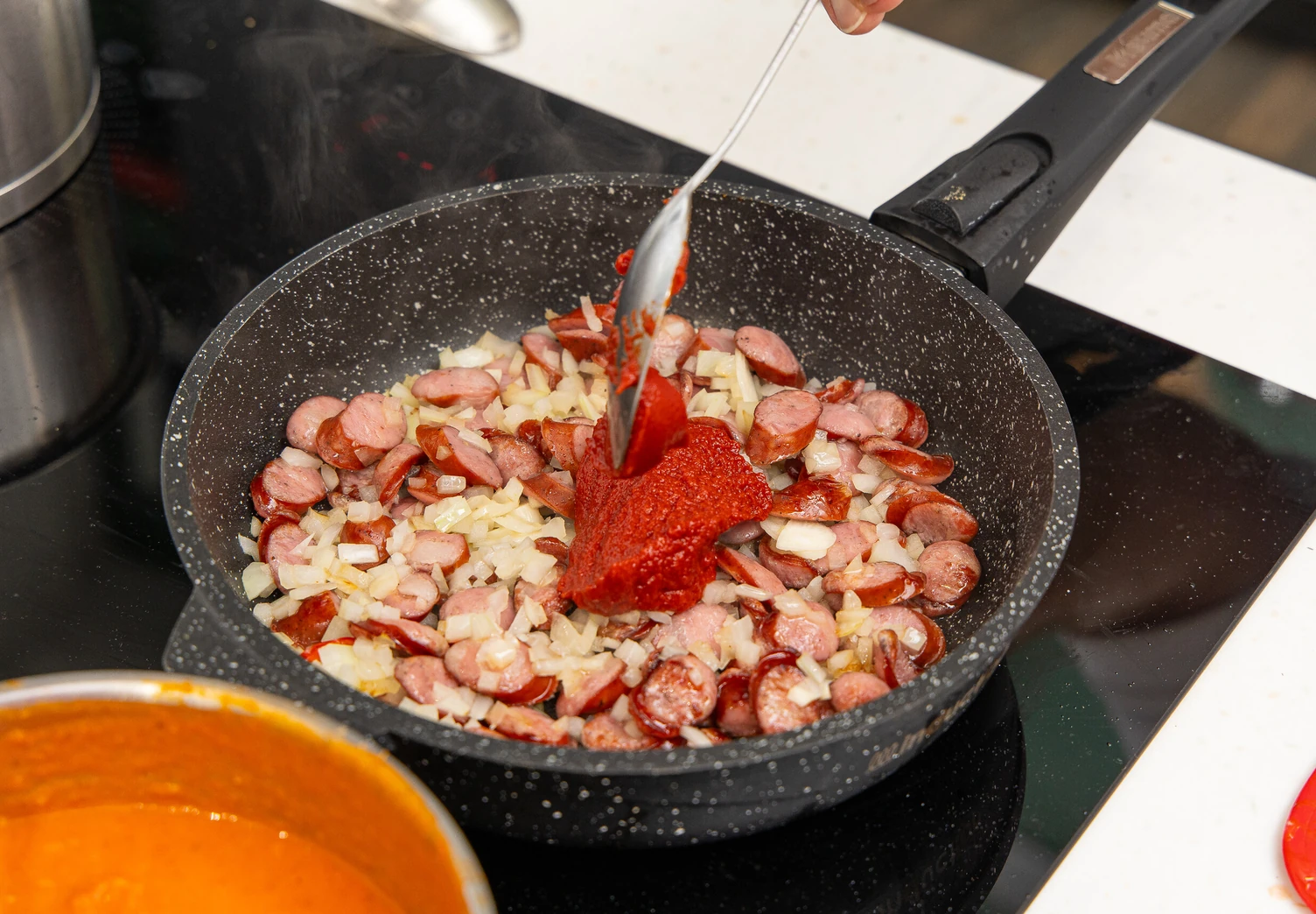 Сезон холодов не за горами, а значит, самое время обратить внимание на этот рецепт! Насыщенный томатный суп с фасолью и пикантными колбасками родом из Испании согреет в непогоду и надолго зарядит энергией.