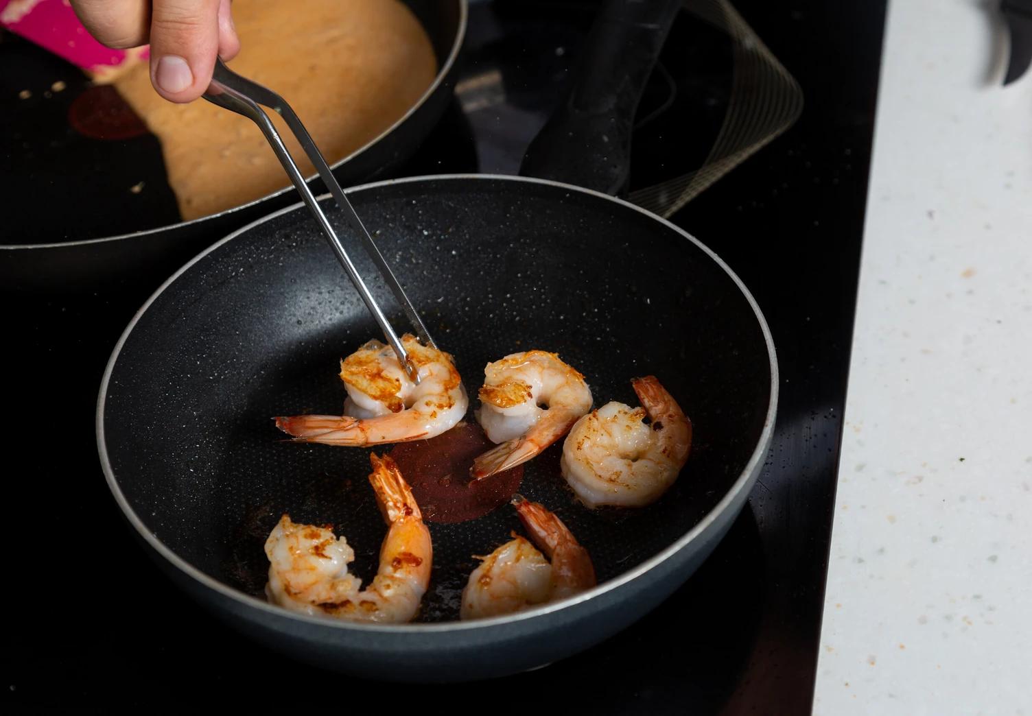Разморозьте креветки заранее в холодильнике или за полчаса в ледяной воде прямо в упаковке.