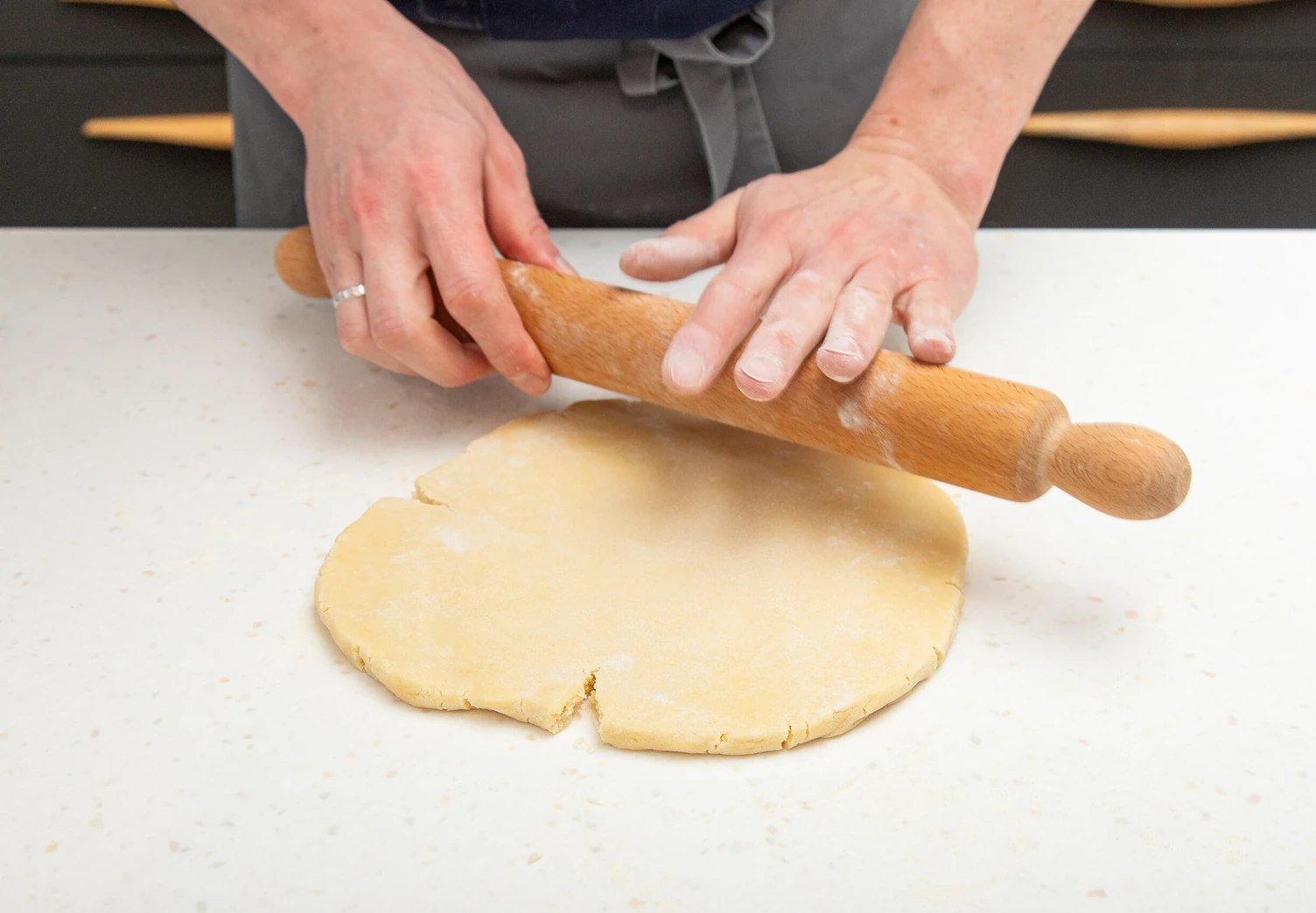 Подготовленное тесто раскатайте в пласт толщиной примерно 3 мм.