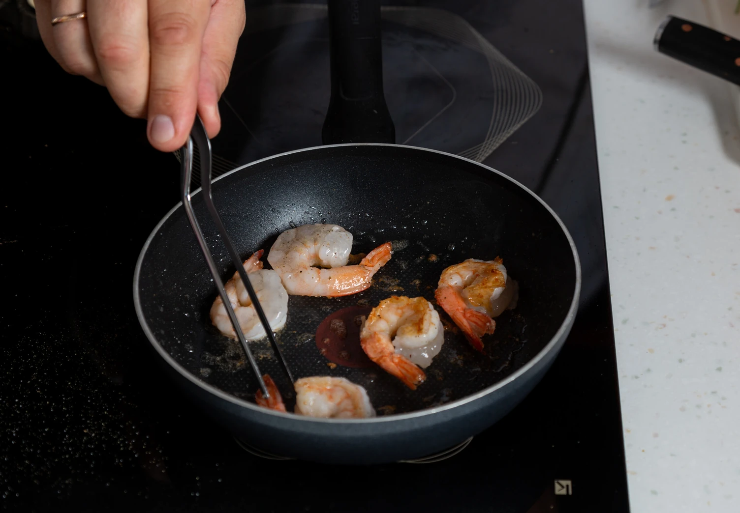 Разморозьте креветки заранее в холодильнике или за полчаса в ледяной воде прямо в упаковке.