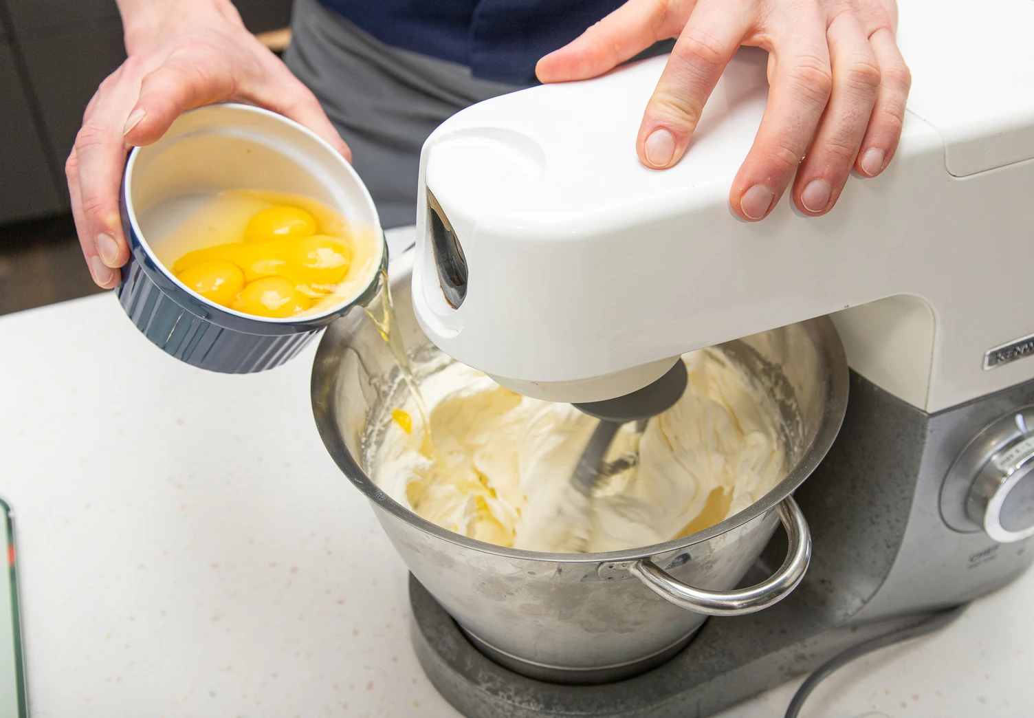 Смешайте муку, разрыхлитель, миндальную и сахарную пудру в глубокой миске.