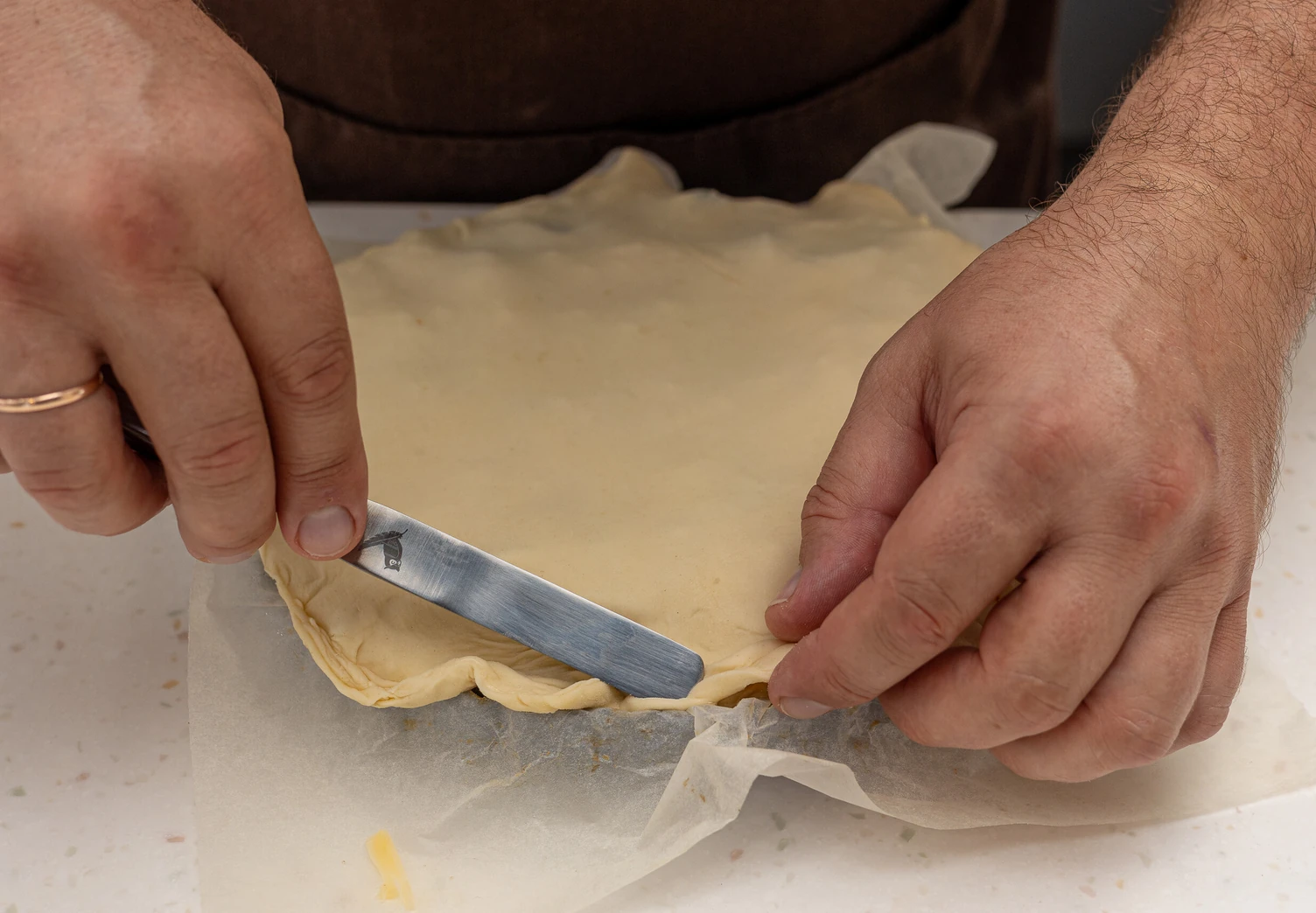 Сделайте надрезы с помощью ножа или ролика для фигурной резки.