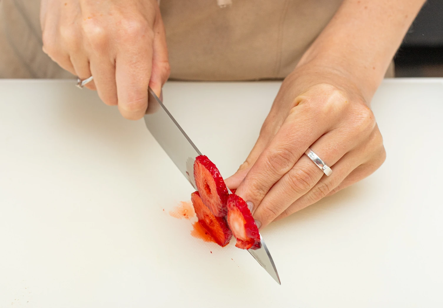 Шпинат промойте и просушите, вяленые помидоры мелко порубите, клубнику нарежьте тонкими ломтиками.