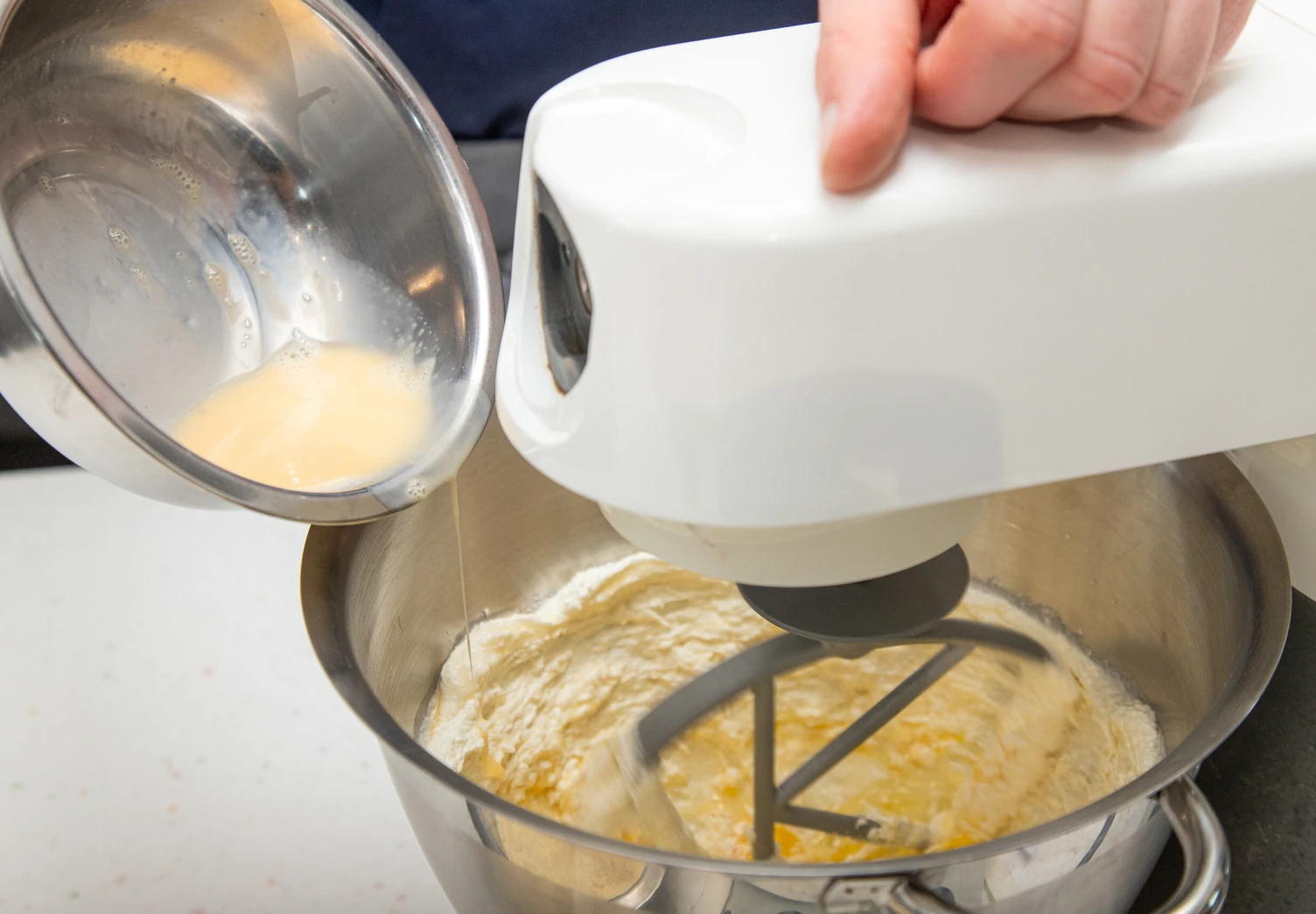 Всыпьте миндальную пудру, муку, соль и разрыхлитель, перемешайте до однородности. В конце по желанию добавьте ром или коньяк.