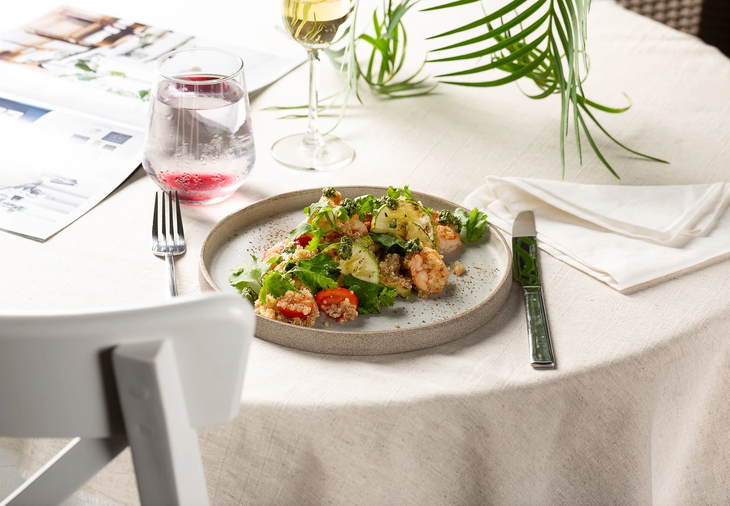 Этот рецепт — идеальный баланс вкуса и пользы: питательная киноа, богатые белком креветки и хрустящие цукини с лёгкой цитрусовой заправкой. Готовится за 15 минут, насыщает без тяжести — то, что нужно для современного ритма жизни.
