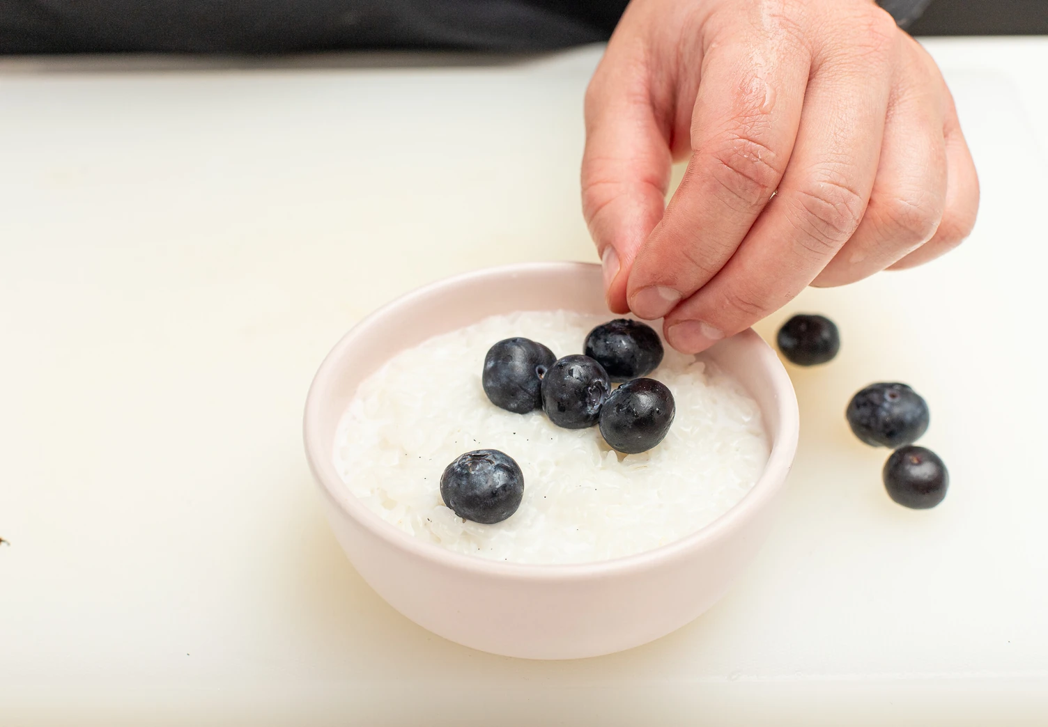 Эта нежнейшая рисовая каша покорит даже тех, кто не придерживается веганской диеты. Вместо голубики можно использовать любые другие сезонные ягоды или фрукты: например, запечённые абрикосы или инжир.