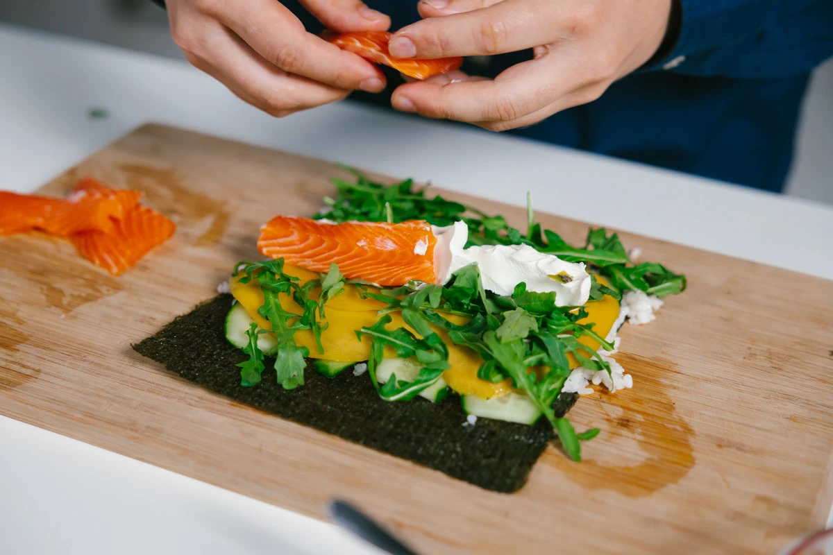 Ролл с манго и форелью готов.