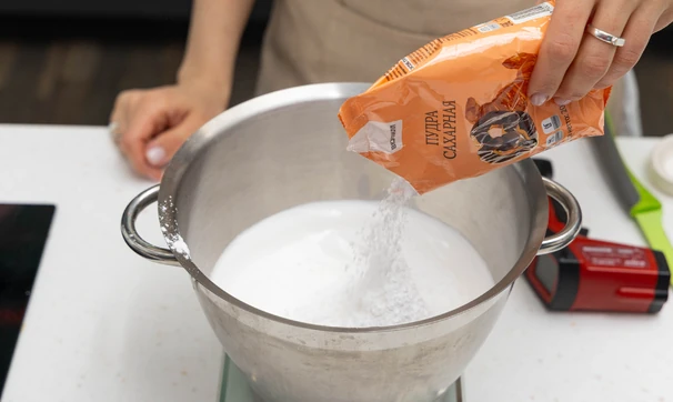 В конце добавьте сахарную пудру и взбивайте ещё несколько секунд до полного её соединения с массой.