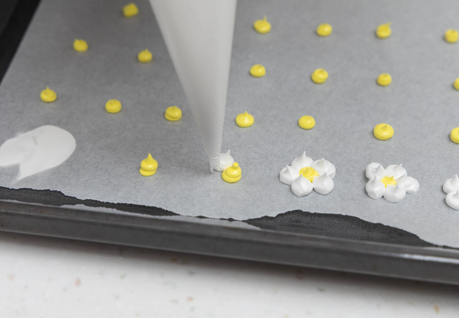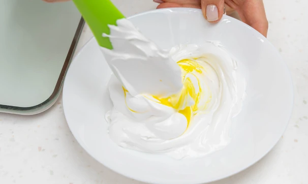 Часть меренги покрасьте жёлтым для серединок.